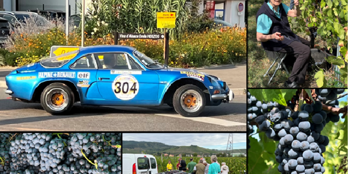 Pendant que les pilotes chevronnés faisaient leurs essais pour la 23ème course de côte Turckheim-Trois-Épis, notre équipe de vendangeurs non moins chevronnée s’échauffait pour grimper bientôt dans nos coteaux Grand Cru, en commençant par une parcelle de plaine facile: la récolte du Pinot Noir 2023!